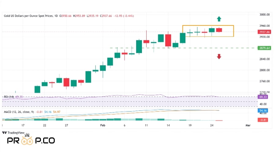 قیمت طلا (XAU/USD) پس از رسیدن به بالاترین سطح تاریخی، کاهش یافته و معاملهگران بخشی از سود خود را برداشت کردهاند. این کاهش به واسطه نگرانیهای پیرامون طرح تعرفههای ترامپ و انتظارات کاهش نرخ توسط فدرال رزرو رقم خورده است. در سشن آسیایی سهشنبه 7اسفند، با وجود جهتگیری نزولی، قیمت طلا هنوز نزدیک به اوج تاریخی دیروز باقی مانده و شرایط کمی اشباع خرید در نمودار روزانه مشاهده میشود.